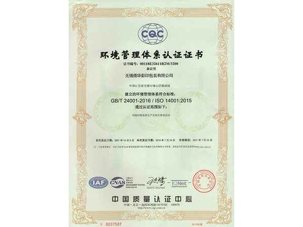 • 环境管理体系认证证书
